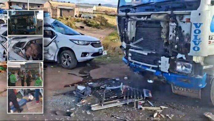 Un lamentable accidente de tránsito ocurrió la tarde de ayer en la carretera Huancané-Juliaca, a la altura del puente Ramis. Según información preliminar, 7 personas habrían fallecido, mientras que 2 resultaron con heridas de gravedad.