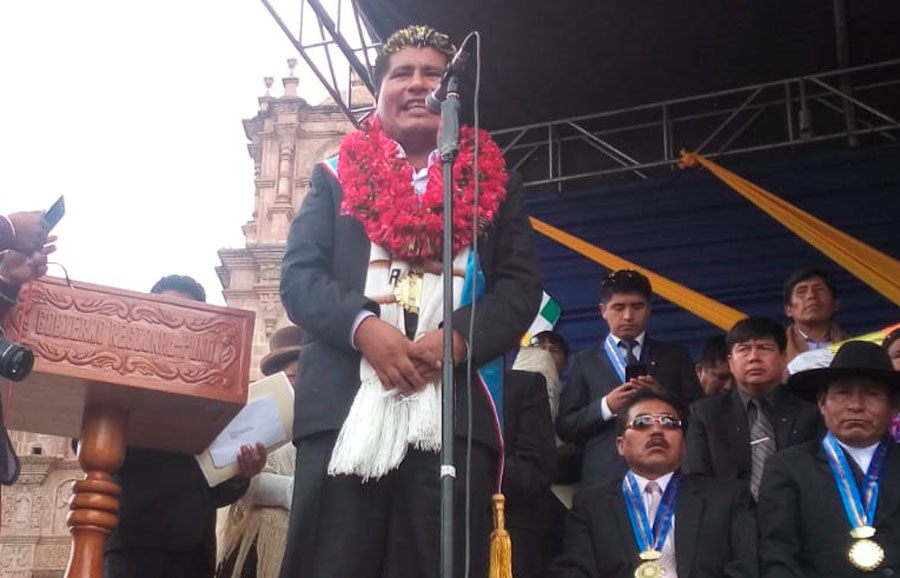 Con un discurso crítico, el gobernador regional Walter Aduviri Calisaya dijo que luchará por el saneamiento básico en toda la región, pues sufrimos de un 80% de brecha en este aspecto.