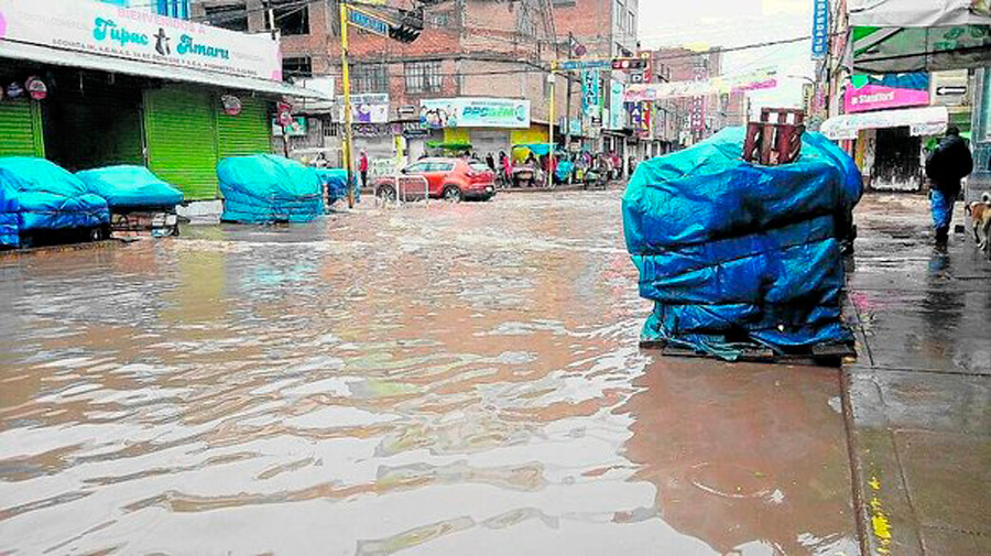 Las aguas pluviales continúan y continuarán generando zozobra en Juliaca, debido a su acumulación en las principales calles, a falta de un sistema de desemboque o drenaje.