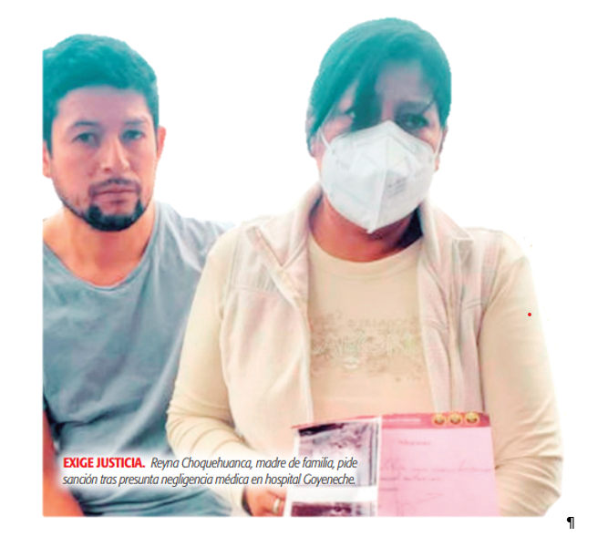 Reyna Choquehuanca ingresó al hospital Goyeneche por recomendación de su ginecólogo particular, José Galindo Paredes, para tratar un embarazo no evolutivo mediante una intervención quirúrgica debido al riesgo de hemorragia, sin embargo, el procedimiento, que debía realizarse en una sala de operaciones, se desarrolló en un tópico con la participación de la residente médico Marlene Meléndez, lo que ocasionó complicaciones.