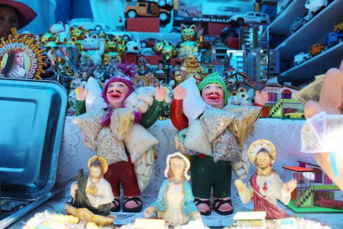 El Ekeko es la fiel representación humanoide en las ferias donde se ofrecen miniaturas o “alasitas”; para el poblador andino, en determinadas fechas, es importante comprar un carro, una casa, un hotel, una pala, pico, carretilla y cuanto desee para que el Dios de la abundancia (Ekeko), al bendecirlo, cumpla con el deseo. Esta feria es común en todo el altiplano, inclusive en la vecina república de Bolivia, por lo que es un reconocimiento a la cultura ancestral andina, no existiendo una descripción fáctica real; más al contrario, se pierde entre mitos, cuentos y leyendas. Al parecer, los católicos hispanos trataron de satanizarlo, obligando a los nativos a negarle la reverencia o culto al Ekeko. Pero la fama del diosecillo andino continuó próspera hasta nuestros días.