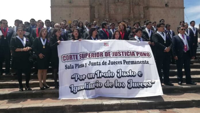 Al finalizar la ceremonia protocolar, los magistrados fueron al frente de la Catedral de Puno, donde realizaron un plantón en contra del Gobierno Central y exigieron la homologación e incremento de sus haberes. Ellos continúan en sesión permanente desde de diciembre del 2019.