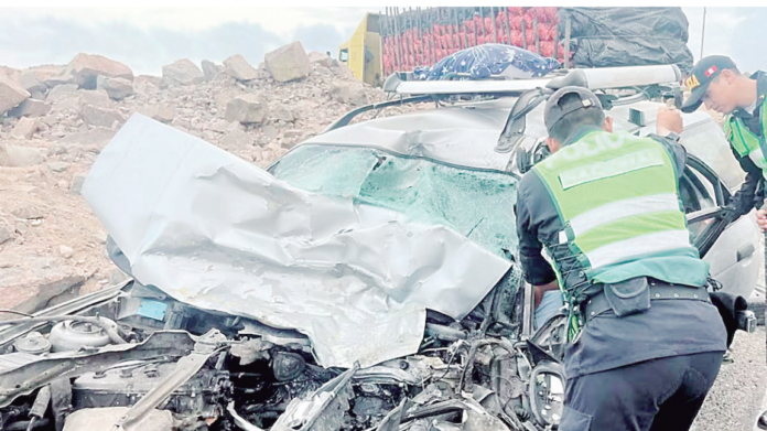 En el automóvil viajaban Julio Enrique Romero Lazo, de 64 años, y Ruby Elizabeth Bernal de Romero, de 63 años, quienes quedaron atrapados en el vehículo y fallecieron en el acto.