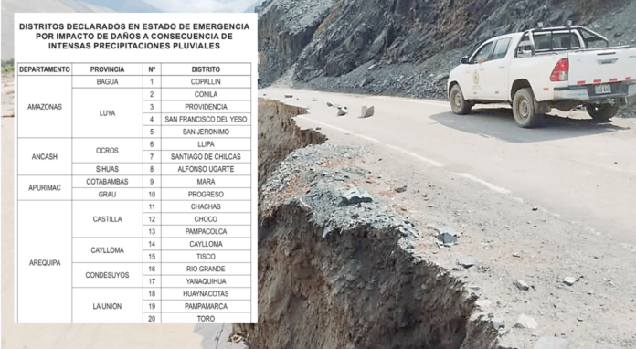 El Gobierno central declaró en emergencia a solo 10 distritos de las provincias de Castilla, Caylloma, Condesuyos y La Unión, a pesar de que el Gobierno Regional de Arequipa (GRA) solicitó la inclusión de los 103 distritos afectados por las intensas lluvias.