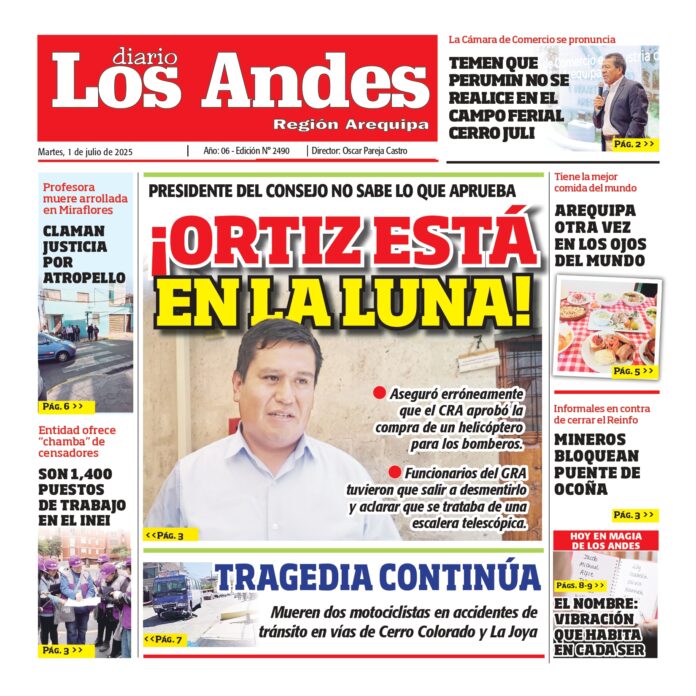 Por: Diario los Andes Fecha: junio 30, 2025 DIARIO DIGITAL AREQUIPA: Diario los Andes 01/07/2025 Vistas: 17 TagsArequipaDiario DigitalDiario Los Andes Artículo anteriorSemanario Los Andes 30/06/2025Artículo siguientePUNO: Diario los Andes 01/07/2025 Diario los Andes Compartir post: FacebookTwitterPinterestWhatsApp Suscríbete Quiero entrar He leído y acepto la Política de Privacidad. Populares Detectan 80 buses con pasaje elevado en Arequipa Fiscalía descarta desabastecimiento de gas en Socabaya Reparación de ductos de Camisea alcanza 64% ¿Qué tan buena es la marca Samsung en electrodomésticos para el hogar? Bus con más de 50 pasajeros cae al río en Juanjui Más vistosMás vistos Detectan 80 buses con pasaje elevado en Arequipa Diario los Andes - marzo 11, 2026 Redacción: Jessimiel Rosas Inspectores de transporte de la Municipalidad Provincial... Fiscalía descarta desabastecimiento de gas en Socabaya Diario los Andes - marzo 11, 2026 Redacción: Jessimiel Rosas El Ministerio Público descartó el desabastecimiento de... Reparación de ductos de Camisea alcanza 64% Diario los Andes - marzo 11, 2026 Redacción: Jessimiel Rosas El Ministerio de Energía y Minas... ¿Qué tan buena es la marca Samsung en electrodomésticos para el hogar? Diario los Andes - marzo 11, 2026 Subido por: Miluz Tito Cuando decides renovar los electrodomésticos...