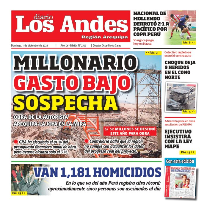 Por: Diario los Andes Fecha: diciembre 1, 2024 DIARIO DIGITAL AREQUIPA: Diario los Andes 01/12/2024 Vistas: 25 TagsDiario DigitalDiario Los Andes Artículo anteriorPUNO: Diario los Andes 30/11/2024Artículo siguientePUNO: Diario los Andes 01/12/2024 Diario los Andes Compartir post: FacebookTwitterPinterestWhatsApp Suscríbete Quiero entrar He leído y acepto la Política de Privacidad. Populares DIARIO LOS ANDES AREQUIPA: 12/04/2026 DIARIO LOS ANDES PUNO: 12/04/26 Arequipa: Precio del balón supera los S/50 en últimas semanas Arequipa: Detienen a adulto mayor acusado de tocamientos indebidos a menor Puno: Alertan incremento de temperatura este domingo de elecciones generales Más vistosMás vistos DIARIO LOS ANDES AREQUIPA: 12/04/2026 admingeneral - abril 11, 2026 DIARIO LOS ANDES PUNO: 12/04/26 admingeneral - abril 11, 2026 Arequipa: Precio del balón supera los S/50 en últimas semanas admineditor - abril 11, 2026 Redacción: Jessimiel Rosas En el distrito de Cayma, el precio... Arequipa: Detienen a adulto mayor acusado de tocamientos indebidos a menor admineditor - abril 11, 2026 Redacción: Jessimiel Rosas Un hombre de 76 años fue detenido...