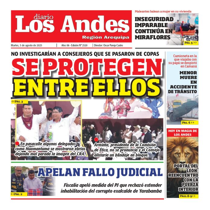 Por: Diario los Andes Fecha: agosto 5, 2025 DIARIO DIGITAL AREQUIPA: Diario Los Andes 05/08/2025 Vistas: 19 TagsArequipaDiario DigitalDiario Los Andes Artículo anteriorSemanario Los Andes 04/08/2025Artículo siguientePUNO: Diario Los Andes 05/08/2025 Diario los Andes Compartir post: FacebookTwitterPinterestWhatsApp Suscríbete Quiero entrar He leído y acepto la Política de Privacidad. Populares Semanario Los Andes 13/04/2026 DIARIO LOS ANDES AREQUIPA: 12/04/2026 DIARIO LOS ANDES PUNO: 12/04/26 Arequipa: Precio del balón supera los S/50 en últimas semanas Arequipa: Detienen a adulto mayor acusado de tocamientos indebidos a menor Más vistosMás vistos Semanario Los Andes 13/04/2026 admingeneral - abril 12, 2026 DIARIO LOS ANDES AREQUIPA: 12/04/2026 admingeneral - abril 11, 2026 DIARIO LOS ANDES PUNO: 12/04/26 admingeneral - abril 11, 2026 Arequipa: Precio del balón supera los S/50 en últimas semanas admineditor - abril 11, 2026 Redacción: Jessimiel Rosas En el distrito de Cayma, el precio...