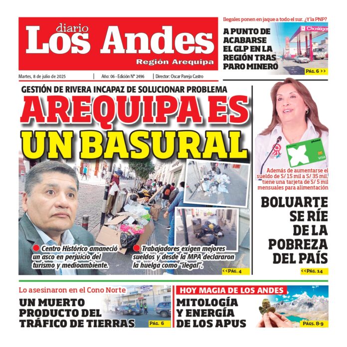 Por: Diario los Andes Fecha: julio 7, 2025 DIARIO DIGITAL AREQUIPA: Diario los Andes 08/07/2025 Vistas: 44 TagsArequipaDiario DigitalDiario Los Andes Artículo anteriorPUNO: Diario los Andes 08/07/2025Artículo siguienteAREQUIPA: Diario los Andes 09/07/2025 Diario los Andes Compartir post: FacebookTwitterPinterestWhatsApp Suscríbete Quiero entrar He leído y acepto la Política de Privacidad. Populares Semanario Los Andes 13/04/2026 DIARIO LOS ANDES AREQUIPA: 12/04/2026 DIARIO LOS ANDES PUNO: 12/04/26 Arequipa: Precio del balón supera los S/50 en últimas semanas Arequipa: Detienen a adulto mayor acusado de tocamientos indebidos a menor Más vistosMás vistos Semanario Los Andes 13/04/2026 admingeneral - abril 12, 2026 DIARIO LOS ANDES AREQUIPA: 12/04/2026 admingeneral - abril 11, 2026 DIARIO LOS ANDES PUNO: 12/04/26 admingeneral - abril 11, 2026 Arequipa: Precio del balón supera los S/50 en últimas semanas admineditor - abril 11, 2026 Redacción: Jessimiel Rosas En el distrito de Cayma, el precio...