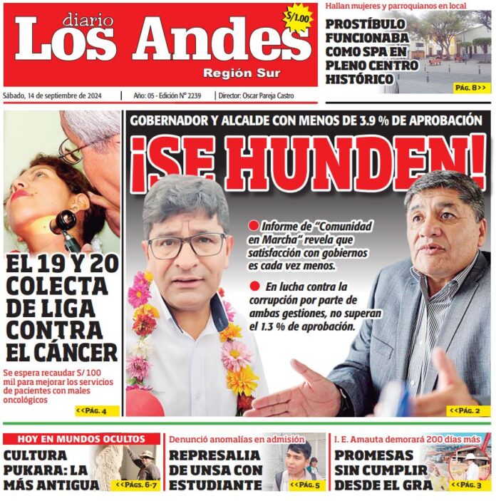 Por: Diario los Andes Fecha: septiembre 14, 2024 DIARIO DIGITAL AREQUIPA: Diario Los Andes 14/09/2024 Vistas: 33 Artículo anteriorPUNO: Diario Los Andes 13/09/2024Artículo siguientePUNO: Diario Los Andes 14/09/2024 Diario los Andes Compartir post: FacebookTwitterPinterestWhatsApp Suscríbete Quiero entrar He leído y acepto la Política de Privacidad. Populares DIARIO LOS ANDES PUNO: 14/03/2026 DIARIO LOS ANDES AREQUIPA: 14/03/2026 Congreso oficializa el Día del Himno Nacional Asalto a molino termina con un muerto en La Rinconada Conductor muere tras ataque incendiario a bus Más vistosMás vistos DIARIO LOS ANDES PUNO: 14/03/2026 Diario los Andes - marzo 14, 2026 DIARIO LOS ANDES AREQUIPA: 14/03/2026 Diario los Andes - marzo 14, 2026 Congreso oficializa el Día del Himno Nacional Diario los Andes - marzo 13, 2026 Redacción: Jessimiel Rosas El Congreso de la República aprobó en... Asalto a molino termina con un muerto en La Rinconada Diario los Andes - marzo 13, 2026 Redacción: Jessimiel Rosas Una persona murió durante una balacera registrada...