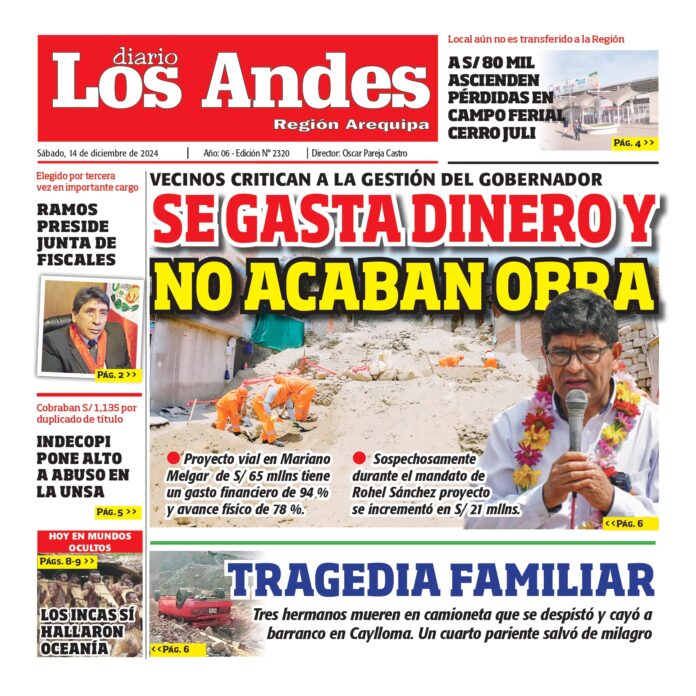Por: Diario los Andes Fecha: diciembre 14, 2024 DIARIO DIGITAL AREQUIPA: Diario los Andes 14/12/2024 Vistas: 16 TagsArequipaDiario DigitalDiario Los Andes Artículo anteriorPUNO: Diario los Andes 13/12/2024Artículo siguientePUNO: Diario los Andes 14/12/2024 Diario los Andes Compartir post: FacebookTwitterPinterestWhatsApp Suscríbete Quiero entrar He leído y acepto la Política de Privacidad. Populares DIARIO LOS ANDES PUNO: 14/03/2026 DIARIO LOS ANDES AREQUIPA: 14/03/2026 Congreso oficializa el Día del Himno Nacional Asalto a molino termina con un muerto en La Rinconada Conductor muere tras ataque incendiario a bus Más vistosMás vistos DIARIO LOS ANDES PUNO: 14/03/2026 Diario los Andes - marzo 14, 2026 DIARIO LOS ANDES AREQUIPA: 14/03/2026 Diario los Andes - marzo 14, 2026 Congreso oficializa el Día del Himno Nacional Diario los Andes - marzo 13, 2026 Redacción: Jessimiel Rosas El Congreso de la República aprobó en... Asalto a molino termina con un muerto en La Rinconada Diario los Andes - marzo 13, 2026 Redacción: Jessimiel Rosas Una persona murió durante una balacera registrada...