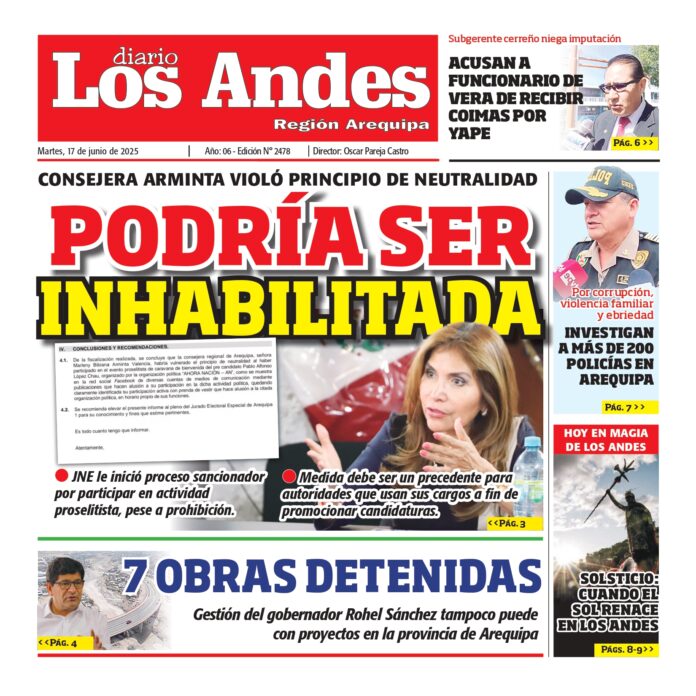 Por: Diario los Andes Fecha: junio 17, 2025 DIARIO DIGITAL AREQUIPA: Diario los Andes 17/06/2025 Vistas: 32 TagsArequipaDiario DigitalDiario Los Andes Artículo anteriorSemanario Los Andes 16/06/2025Artículo siguientePUNO: Diario los Andes 17/06/2025 Diario los Andes Compartir post: FacebookTwitterPinterestWhatsApp Suscríbete Quiero entrar He leído y acepto la Política de Privacidad. Populares DIARIO LOS ANDES PUNO: 07/03/2026 DIARIO LOS ANDES AREQUIPA: 07/03/2026 Combustibles suben por escasez de GNV Choque en Panamericana Sur deja cuatro muertos Sabancaya registra aumento de explosiones y dispersión de ceniza Más vistosMás vistos DIARIO LOS ANDES PUNO: 07/03/2026 Diario los Andes - marzo 7, 2026 DIARIO LOS ANDES AREQUIPA: 07/03/2026 Diario los Andes - marzo 7, 2026 Combustibles suben por escasez de GNV Diario los Andes - marzo 6, 2026 Redacción: Jessimiel Rosas El precio de los combustibles registró un... Choque en Panamericana Sur deja cuatro muertos Diario los Andes - marzo 6, 2026 Redacción: Jessimiel Rosas Cuatro personas fallecieron tras un accidente de...