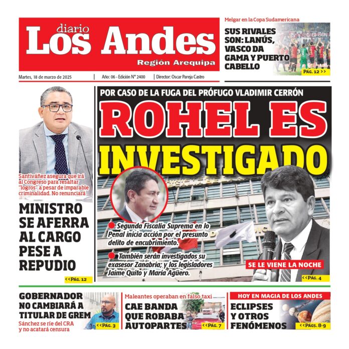 Por: Diario los Andes Fecha: marzo 18, 2025 DIARIO DIGITAL AREQUIPA : Diario los Andes 18/03/2025 Vistas: 23 TagsArequipaDiario DigitalDiario Los Andes Artículo anteriorSemanario Los Andes 17/03/2025Artículo siguientePUNO : Diario los Andes 18/03/2025 Diario los Andes Compartir post: FacebookTwitterPinterestWhatsApp Suscríbete Quiero entrar He leído y acepto la Política de Privacidad. Populares Semanario Los Andes 13/04/2026 DIARIO LOS ANDES AREQUIPA: 12/04/2026 DIARIO LOS ANDES PUNO: 12/04/26 Arequipa: Precio del balón supera los S/50 en últimas semanas Arequipa: Detienen a adulto mayor acusado de tocamientos indebidos a menor Más vistosMás vistos Semanario Los Andes 13/04/2026 admingeneral - abril 12, 2026 DIARIO LOS ANDES AREQUIPA: 12/04/2026 admingeneral - abril 11, 2026 DIARIO LOS ANDES PUNO: 12/04/26 admingeneral - abril 11, 2026 Arequipa: Precio del balón supera los S/50 en últimas semanas admineditor - abril 11, 2026 Redacción: Jessimiel Rosas En el distrito de Cayma, el precio...