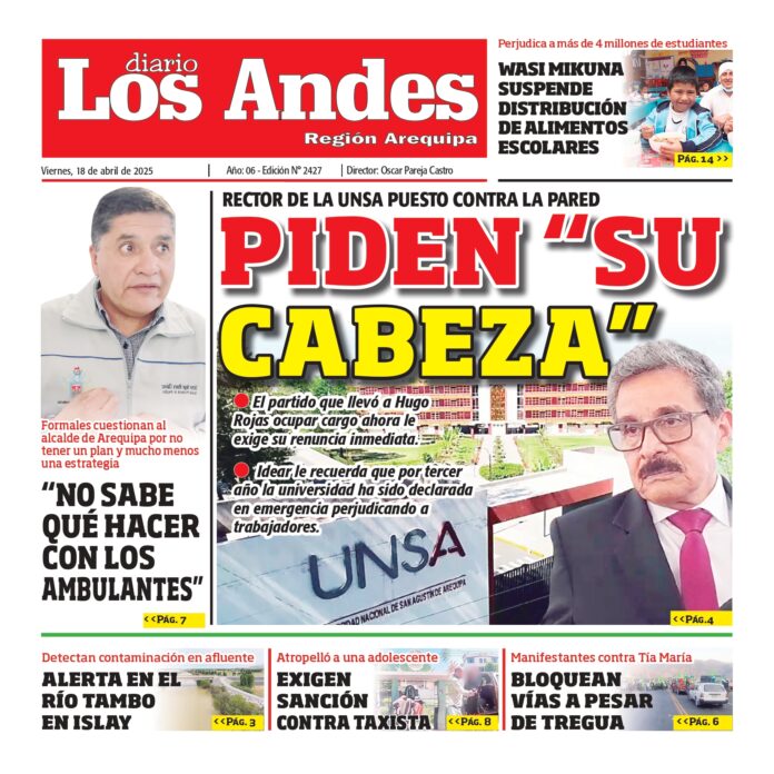 Por: Diario los Andes Fecha: abril 18, 2025 DIARIO DIGITAL AREQUIPA: Diario los Andes 18/04/2025 Vistas: 27 TagsArequipaDiario DigitalDiario Los Andes Artículo anteriorPUNO: Diario los Andes 18/04/2025Artículo siguienteAREQUIPA: Diario los Andes 19/04/2025 Diario los Andes Compartir post: FacebookTwitterPinterestWhatsApp Suscríbete Quiero entrar He leído y acepto la Política de Privacidad. Populares Keiko lidera y le siguen cuatro candidatos Semanario Los Andes 13/04/2026 DIARIO LOS ANDES AREQUIPA: 12/04/2026 DIARIO LOS ANDES PUNO: 12/04/26 Arequipa: Precio del balón supera los S/50 en últimas semanas Más vistosMás vistos Keiko lidera y le siguen cuatro candidatos admineditor - abril 13, 2026 A boca de urna de encuestadora Datum, Fujimori habría... Semanario Los Andes 13/04/2026 admingeneral - abril 12, 2026 DIARIO LOS ANDES AREQUIPA: 12/04/2026 admingeneral - abril 11, 2026 DIARIO LOS ANDES PUNO: 12/04/26 admingeneral - abril 11, 2026
