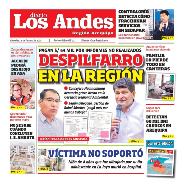 Por: Diario los Andes Fecha: febrero 19, 2025 DIARIO DIGITAL AREQUIPA : Diario los Andes 19/02/2025 Vistas: 14 TagsArequipaDiario DigitalDiario Los Andes Artículo anteriorPUNO : Diario los Andes 18/02/2025Artículo siguientePUNO : Diario los Andes 19/02/2025 Diario los Andes Compartir post: FacebookTwitterPinterestWhatsApp Suscríbete Quiero entrar He leído y acepto la Política de Privacidad. Populares FMI rinde homenaje a Velarde en Washington DIARIO LOS ANDES PUNO: 18/04/2026 DIARIO LOS ANDES AREQUIPA: 18/04/2026 DIRESA Puno recibe más de 300 mil vacunas contra el sarampión Aprueban proyecto de ordenanza para incorporar enfermeros en colegios Más vistosMás vistos FMI rinde homenaje a Velarde en Washington admineditor - abril 18, 2026 Redacción: Diario Los Andes El presidente del Banco Central... DIARIO LOS ANDES PUNO: 18/04/2026 admingeneral - abril 18, 2026 DIARIO LOS ANDES AREQUIPA: 18/04/2026 admingeneral - abril 18, 2026 DIRESA Puno recibe más de 300 mil vacunas contra el sarampión admineditor - abril 17, 2026 La mañana de este 17 de abril, la Dirección...
