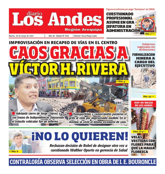Por: Diario los Andes Fecha: mayo 20, 2025 DIARIO DIGITAL AREQUIPA: Diario los Andes 20/05/2025 Vistas: 31 Artículo anteriorPUNO: Diario los Andes 20/05/2025Artículo siguienteAREQUIPA: Diario los Andes 21/05/2025 Diario los Andes Compartir post: FacebookTwitterPinterestWhatsApp Suscríbete Quiero entrar He leído y acepto la Política de Privacidad. Populares Semanario Los Andes 13/04/2026 DIARIO LOS ANDES AREQUIPA: 12/04/2026 DIARIO LOS ANDES PUNO: 12/04/26 Arequipa: Precio del balón supera los S/50 en últimas semanas Arequipa: Detienen a adulto mayor acusado de tocamientos indebidos a menor Más vistosMás vistos Semanario Los Andes 13/04/2026 admingeneral - abril 12, 2026 DIARIO LOS ANDES AREQUIPA: 12/04/2026 admingeneral - abril 11, 2026 DIARIO LOS ANDES PUNO: 12/04/26 admingeneral - abril 11, 2026 Arequipa: Precio del balón supera los S/50 en últimas semanas admineditor - abril 11, 2026 Redacción: Jessimiel Rosas En el distrito de Cayma, el precio...