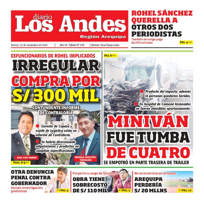 Por: Diario los Andes Fecha: noviembre 22, 2024 DIARIO DIGITAL AREQUIPA: Diario los Andes 22/11/2024 Vistas: 8 TagsArequipaDiario DigitalDiario Los Andes Artículo anteriorPUNO: Diario los Andes 21/11/2024Artículo siguientePUNO: Diario los Andes 22/11/2024 Diario los Andes Compartir post: FacebookTwitterPinterestWhatsApp Suscríbete Quiero entrar He leído y acepto la Política de Privacidad. Populares Keiko lidera y le siguen cuatro candidatos Semanario Los Andes 13/04/2026 DIARIO LOS ANDES AREQUIPA: 12/04/2026 DIARIO LOS ANDES PUNO: 12/04/26 Arequipa: Precio del balón supera los S/50 en últimas semanas Más vistosMás vistos Keiko lidera y le siguen cuatro candidatos admineditor - abril 13, 2026 A boca de urna de encuestadora Datum, Fujimori habría... Semanario Los Andes 13/04/2026 admingeneral - abril 12, 2026 DIARIO LOS ANDES AREQUIPA: 12/04/2026 admingeneral - abril 11, 2026 DIARIO LOS ANDES PUNO: 12/04/26 admingeneral - abril 11, 2026