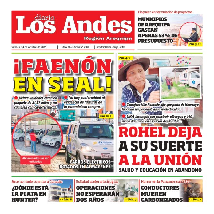 Por: Diario los Andes Fecha: octubre 24, 2025 DIARIO DIGITAL AREQUIPA: Diario Los Andes 24/10/2025 Vistas: 36 Artículo anteriorPUNO: Diario Los Andes 23/10/2025Artículo siguientePUNO: Diario Los Andes 24/10/2025 Diario los Andes Compartir post: FacebookTwitterPinterestWhatsApp Suscríbete Quiero entrar He leído y acepto la Política de Privacidad. Populares DIARIO LOS ANDES PUNO: 21/04/26 DIARIO LOS ANDES AREQUIPA: 21/04/26 Arequipa: Persecución con disparos deja un detenido y dos heridos Perú suma 20 medallas en los juegos suramericanos de la juventud Panamá 2026 Incautan más de 100 kilos de marihuana en operativo en Cabanillas Más vistosMás vistos DIARIO LOS ANDES PUNO: 21/04/26 admingeneral - abril 21, 2026 DIARIO LOS ANDES AREQUIPA: 21/04/26 admingeneral - abril 21, 2026 Arequipa: Persecución con disparos deja un detenido y dos heridos admineditor - abril 20, 2026 Redacción: Jessimiel Rosas Una persecución policial con disparos se registró... Perú suma 20 medallas en los juegos suramericanos de la juventud Panamá 2026 admineditor - abril 20, 2026 La primera semana de los IV Juegos Suramericanos de...