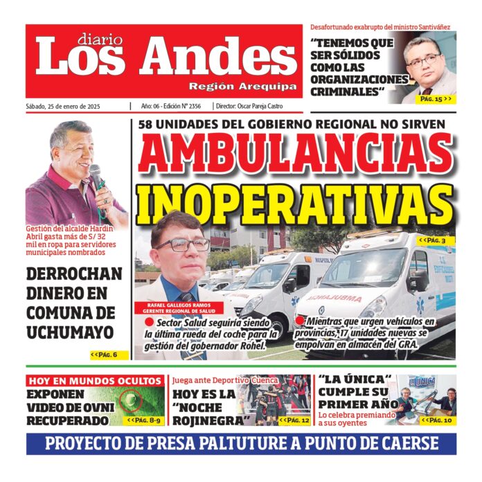 Por: Diario los Andes Fecha: enero 25, 2025 DIARIO DIGITAL AREQUIPA: Diario los Andes 25/01/2025 Vistas: 30 TagsArequipaDiario DigitalDiario Los Andes Artículo anteriorPUNO: Diario los Andes 24/01/2025Artículo siguientePUNO: Diario los Andes 25/01/2025 Diario los Andes Compartir post: FacebookTwitterPinterestWhatsApp Suscríbete Quiero entrar He leído y acepto la Política de Privacidad. Populares Keiko lidera y le siguen cuatro candidatos Semanario Los Andes 13/04/2026 DIARIO LOS ANDES AREQUIPA: 12/04/2026 DIARIO LOS ANDES PUNO: 12/04/26 Arequipa: Precio del balón supera los S/50 en últimas semanas Más vistosMás vistos Keiko lidera y le siguen cuatro candidatos admineditor - abril 13, 2026 A boca de urna de encuestadora Datum, Fujimori habría... Semanario Los Andes 13/04/2026 admingeneral - abril 12, 2026 DIARIO LOS ANDES AREQUIPA: 12/04/2026 admingeneral - abril 11, 2026 DIARIO LOS ANDES PUNO: 12/04/26 admingeneral - abril 11, 2026