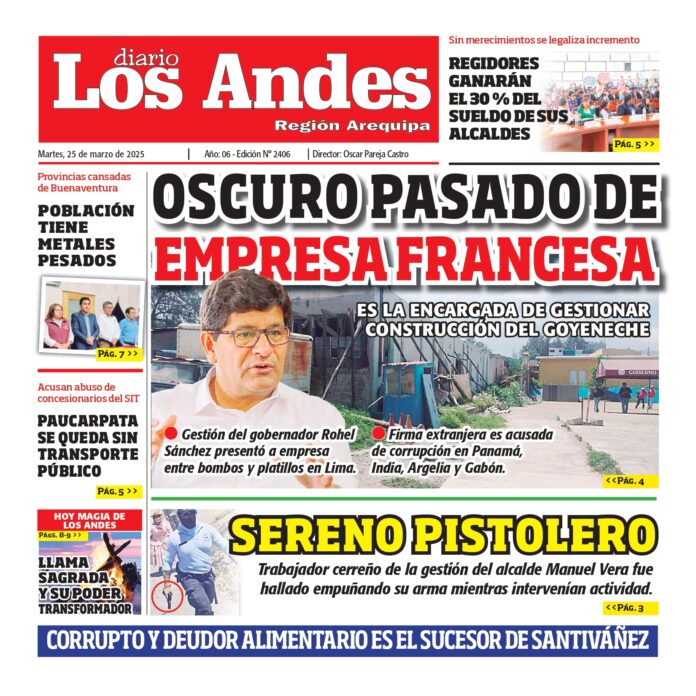 Por: Diario los Andes Fecha: marzo 25, 2025 DIARIO DIGITAL AREQUIPA : Diario los Andes 25/03/2025 Vistas: 32 Artículo anteriorSemanario Los Andes 24/03/2025Artículo siguientePUNO: Diario los Andes 25/03/2025 Diario los Andes Compartir post: FacebookTwitterPinterestWhatsApp Suscríbete Quiero entrar He leído y acepto la Política de Privacidad. Populares Semanario Los Andes 13/04/2026 DIARIO LOS ANDES AREQUIPA: 12/04/2026 DIARIO LOS ANDES PUNO: 12/04/26 Arequipa: Precio del balón supera los S/50 en últimas semanas Arequipa: Detienen a adulto mayor acusado de tocamientos indebidos a menor Más vistosMás vistos Semanario Los Andes 13/04/2026 admingeneral - abril 12, 2026 DIARIO LOS ANDES AREQUIPA: 12/04/2026 admingeneral - abril 11, 2026 DIARIO LOS ANDES PUNO: 12/04/26 admingeneral - abril 11, 2026 Arequipa: Precio del balón supera los S/50 en últimas semanas admineditor - abril 11, 2026 Redacción: Jessimiel Rosas En el distrito de Cayma, el precio...