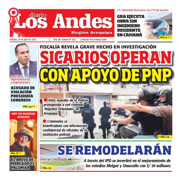 Por: Diario los Andes Fecha: julio 26, 2025 DIARIO DIGITAL AREQUIPA: Diario Los Andes 26/07/2025 Vistas: 18 TagsArequipaDiario DigitalDiario Los Andes Artículo anteriorPUNO: Diario Los Andes 25/07/2025Artículo siguientePUNO: Diario Los Andes 26/07/2025 Diario los Andes Compartir post: FacebookTwitterPinterestWhatsApp Suscríbete Quiero entrar He leído y acepto la Política de Privacidad. Populares DIARIO LOS ANDES PUNO: 08/03/2026 DIARIO LOS ANDES AREQUIPA: 08/03/2026 Pescadores artesanales advierten paro indefinido contra Produce Salvataje rescata a 259 bañistas en playas de Arequipa Puno marcha por igualdad en el Día Internacional de la Mujer Más vistosMás vistos DIARIO LOS ANDES PUNO: 08/03/2026 Diario los Andes - marzo 8, 2026 DIARIO LOS ANDES AREQUIPA: 08/03/2026 Diario los Andes - marzo 8, 2026 Pescadores artesanales advierten paro indefinido contra Produce Diario los Andes - marzo 7, 2026 Redacción: Jessimiel Rosas Pescadores artesanales de la Macrosur advirtieron que... Salvataje rescata a 259 bañistas en playas de Arequipa Diario los Andes - marzo 7, 2026 Redacción: Jessimiel Rosas Un total de 259 personas fueron rescatadas...
