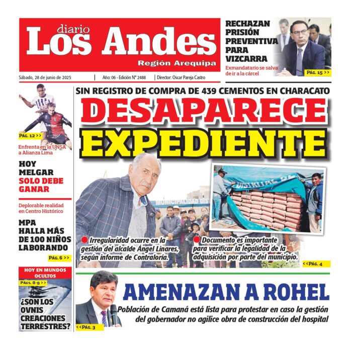 Por: Diario los Andes Fecha: junio 28, 2025 DIARIO DIGITAL AREQUIPA: Diario los Andes 28/06/2025 Vistas: 20 TagsArequipaDiario DigitalDiario Los Andes Artículo anteriorAREQUIPA: Diario los Andes 27/06/2025Artículo siguientePUNO: Diario los Andes 28/06/2025 Diario los Andes Compartir post: FacebookTwitterPinterestWhatsApp Suscríbete Quiero entrar He leído y acepto la Política de Privacidad. Populares DIARIO LOS ANDES PUNO: 13/03/2026 DIARIO LOS ANDES AREQUIPA: 13/03/2026 Arequipa: A clases virtuales por paro del SIT Tránsito libre en Arequipa y costo del pasaje sin control Puno: Obrero fallece al caer de cuarto piso en la urbanización Simón Bolívar Más vistosMás vistos DIARIO LOS ANDES PUNO: 13/03/2026 Diario los Andes - marzo 12, 2026 DIARIO LOS ANDES AREQUIPA: 13/03/2026 Diario los Andes - marzo 12, 2026 Arequipa: A clases virtuales por paro del SIT Diario los Andes - marzo 12, 2026 Redacción: Thais Astoquilca Rivera A solo tres días del inicio... Tránsito libre en Arequipa y costo del pasaje sin control Diario los Andes - marzo 12, 2026 Redacción: Julissa Aquino Insostenible. La crisis en el transporte público...