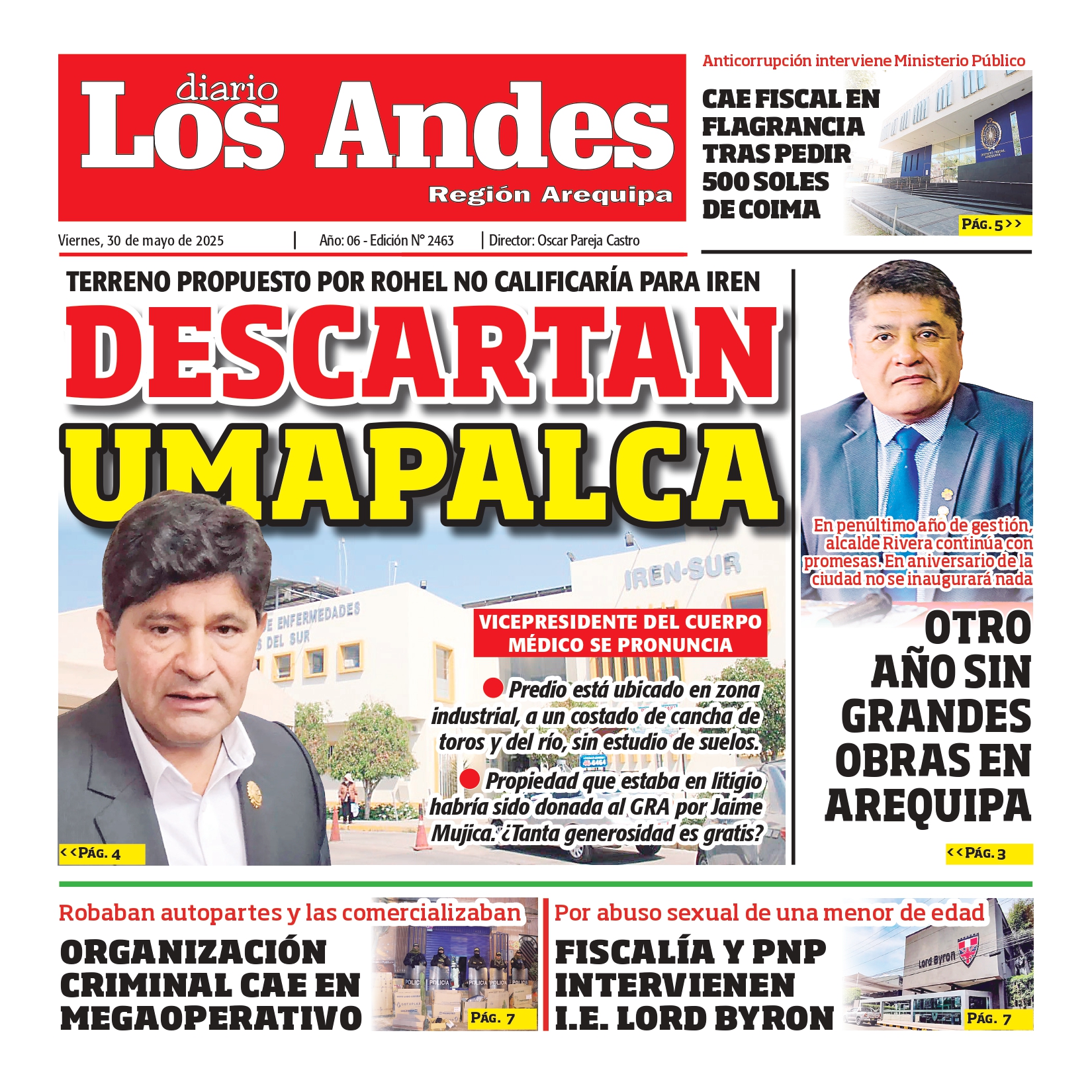 AREQUIPA: Diario los Andes 30/05/2025 Autor de la entrada Por Diario los Andes Fecha de publicación mayo 29, 2025 Categorías En DIARIO VIRTUAL Etiquetas Arequipa, Diario Digital, Diario Los Andes