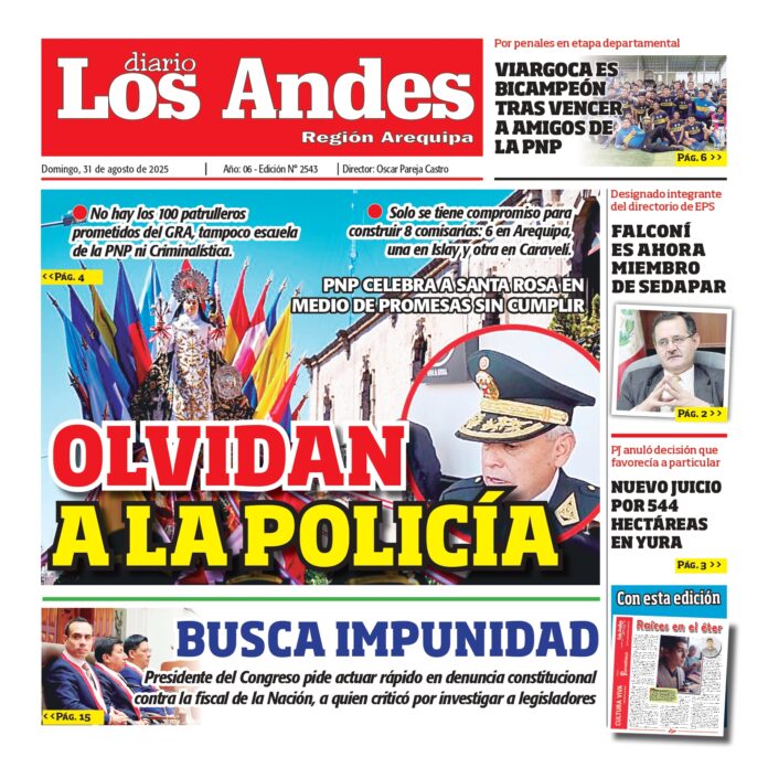 Por: Diario los Andes Fecha: agosto 31, 2025 DIARIO DIGITAL AREQUIPA: Diario Los Andes 31/08/2025 Vistas: 33 Artículo anteriorPUNO: Diario Los Andes 30/08/2025Artículo siguientePUNO: Diario Los Andes 31/08/2025 Diario los Andes Compartir post: FacebookTwitterPinterestWhatsApp Suscríbete Quiero entrar He leído y acepto la Política de Privacidad. Populares Puno: Buscaron la reelección y se estrellaron con la valla Puno: Consejeros vuelven sin pena, ni gloria Puno: Anuncian marcha por fraude DIARIO LOS ANDES PUNO: 15/04/2026 DIARIO LOS ANDES AREQUIPA: 15/04/2026 Más vistosMás vistos Puno: Buscaron la reelección y se estrellaron con la valla admineditor - abril 15, 2026 Los congresista por Puno que intentaron reelegirse en las... Puno: Consejeros vuelven sin pena, ni gloria admineditor - abril 15, 2026 Esta semana se reincorporan a sus labores como consejeros... Puno: Anuncian marcha por fraude admineditor - abril 15, 2026 Fernando Salas convocó en Puno una movilización contra un... DIARIO LOS ANDES PUNO: 15/04/2026 admingeneral - abril 15, 2026