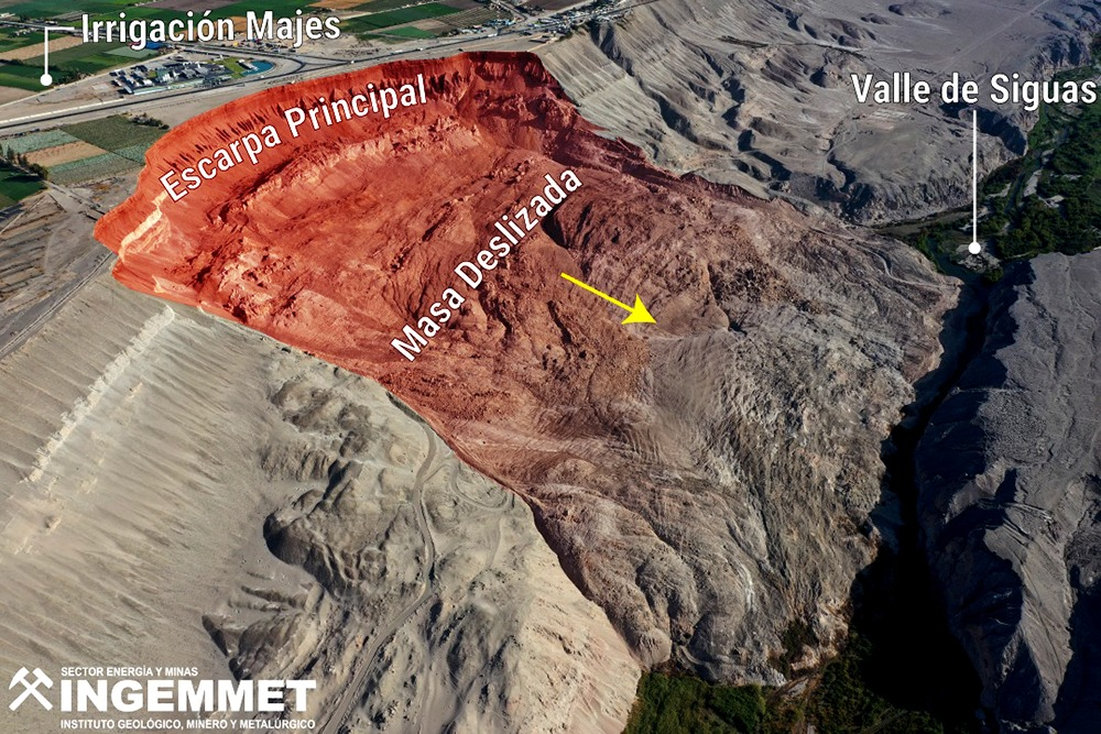 Los deslizamientos y hundimientos registrados en el sector de Alto Siguas, ubicado entre los distritos de Majes y San Juan de Siguas, continúan avanzando de manera preocupante y amenazan con interrumpir el tránsito en la carretera Panamericana Sur, principal vía que conecta Arequipa con el centro y norte del país. Especialistas del Instituto Geológico, Minero y Metalúrgico (Ingemmet) advirtieron que la causa del problema se origina en las filtraciones de agua provenientes del sistema de riego de la irrigación Majes, que desde los años 90 vienen generando deslizamientos progresivos en la zona.
