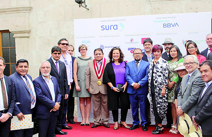 Entre los asistentes resaltaron, el alcalde de Arequipa, Omar Candia, el consejero Veto Bernal en representación del gobernador Élmer Cáceres Llica, la embajadora del Reino Unido, Kate Harrison y la representante del Hay Festival en Latinoamérica, Cristina Fuentes.