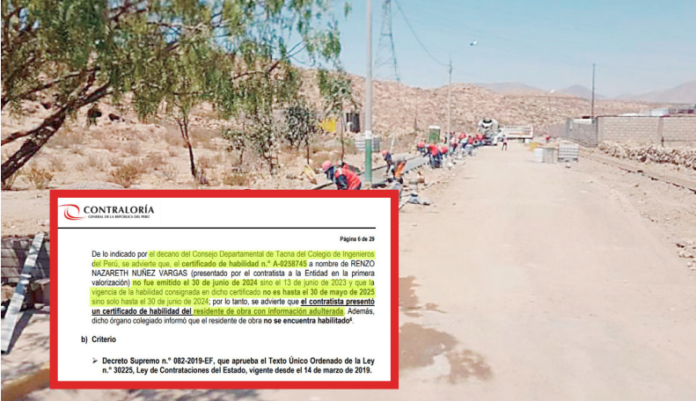 Según el Informe N° 003-2025-OCI/1318-SCC realizado del 19 al 25 de febrero, el residente de obra, Renzo Núñez Vargas, presentó un certificado de habilitación profesional adulterado.