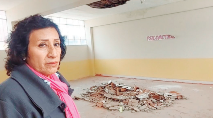 La directora del plantel, Julia Palomino Fernández, informó que la institución tiene más de 60 años y que varios de sus ambientes presentan filtraciones de agua.