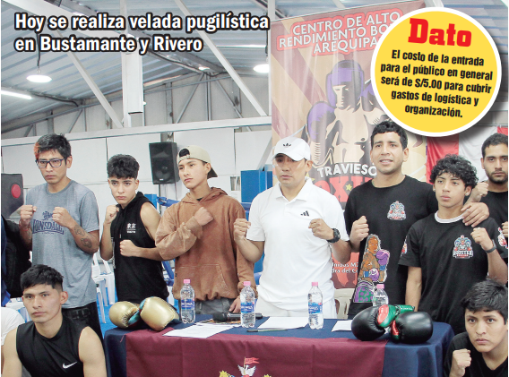 Arequipa. Este sábado 29 de marzo se desarrollará una velada boxística entre pugilistas de Arequipa y Puerto Maldonado (Madre de Dios). Este evento tendrá lugar en la Avenida Estados Unidos Mza. E – LT 10, referencia a media cuadra del cementerio La Apacheta desde las 15:30 horas.