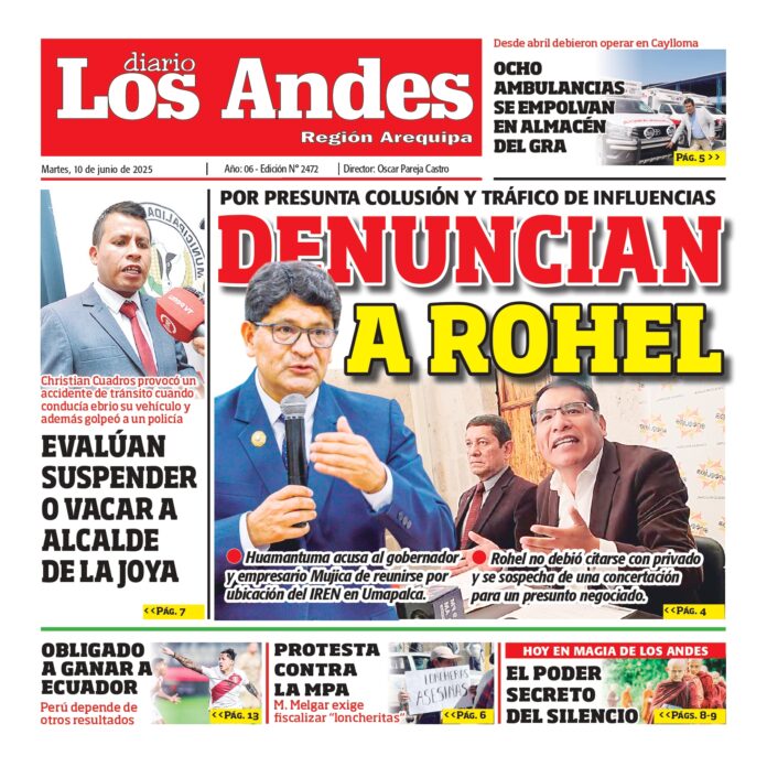 Por: Diario los Andes Fecha: junio 9, 2025 DIARIO DIGITAL AREQUPA: Diario los Andes 10/06/2025 Vistas: 27 TagsArequipaDiario DigitalDiario Los Andes Artículo anteriorSemanario Los Andes 09/06/2025Artículo siguientePUNO: Diario los Andes 10/06/2025 Diario los Andes Compartir post: FacebookTwitterPinterestWhatsApp Suscríbete Quiero entrar He leído y acepto la Política de Privacidad. Populares Puno: Policía apoya en descolmatación de viviendas afectadas por huacico en San Gabán Puno: Madre y su bebé caen de combi en movimiento Puno: Denuncian pregunta usurpación ilegal de explanada del cerro Huaynarroque JNE deja fuera de carrera a lista de Libertad Popular en Arequipa Carretera Arequipa- La Joya cobra otra víctima: cantero muere tras ser atropellado Más vistosMás vistos Puno: Policía apoya en descolmatación de viviendas afectadas por huacico en San Gabán Diario los Andes - febrero 11, 2026 Redacción: Diario Los Andes Efectivos de la Policía Nacional... Puno: Madre y su bebé caen de combi en movimiento Diario los Andes - febrero 11, 2026 Redacción: Diario Los Andes Un grave accidente ocurrido en... Puno: Denuncian pregunta usurpación ilegal de explanada del cerro Huaynarroque Diario los Andes - febrero 11, 2026 Redacción: Diario Los Andes La Municipalidad Provincial de San Román... JNE deja fuera de carrera a lista de Libertad Popular en Arequipa Diario los Andes - febrero 11, 2026 Redacción: Diario Los Andes La lista de candidatos a...