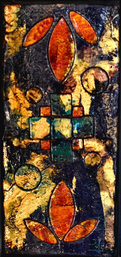 La exposición reúne 24 obras de seis artistas, entre ellas una instalación y dos ponencias académicas, trabajadas en técnicas como óleo, acrílico, escultura y alto relieve. El recorrido está articulado en torno al código 0.4666, principio geométrico identificado por Cortez Hemzler como constante estética y simbólica en diversas culturas originarias de América.