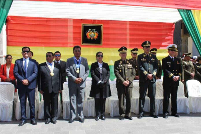 En la ceremonia protocolar participaron el gobernador regional de Puno, Walter Aduviri Calisaya, el General de la Cuarta Brigada de Montaña, Jaime Malpica Lozada, y representantes de otras entidades, quienes saludaron a la Cónsul de Bolivia en Puno, Gladys Quispe Mina, por esta especial fecha.