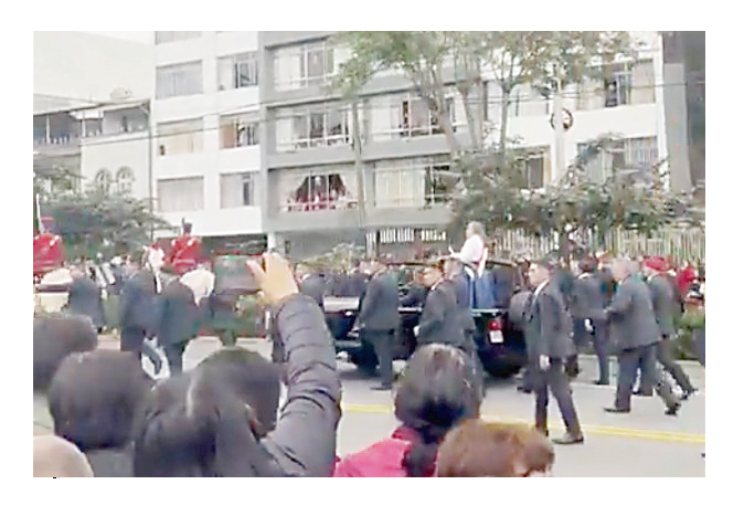 En otros momentos del evento, Dina Boluarte saludaba a las multitudes, según mostraban las cámaras del canal del Estado. Sin embargo, en otras tomas, cuando se observaba en la dirección hacia la que saludaba, no había absolutamente nadie.
