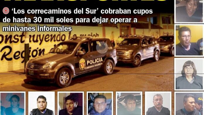 Cobraban cupos por utilizar la red vial entre S/ 250 a S/ 400 mensuales, llegando a recaudar 50 mil soles al mes.