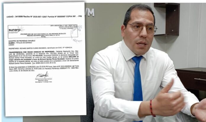 De acuerdo con la inscripción en la Sección Especial de Predios Rurales de la Superintendencia Nacional de Registros Públicos (Sunarp), Richard Santos Flores Escobedo figura como propietario del predio, denominado “Chacarilla Alta Lote Nro. 2”.