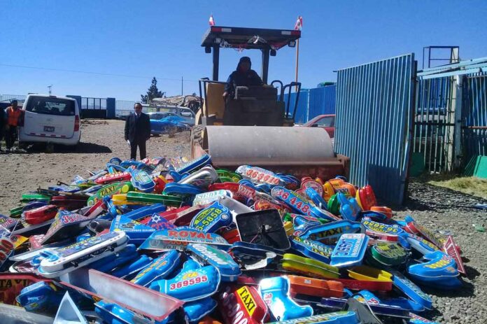 Según Wilber Paredes Jaén, gerente de Tránsito y Seguridad vial de la MPP, fueron destruidos más de 640 casquetes de unidades vehiculares que ofrecen el servicio de taxi y combis de transporte urbano, pues no contaban con la Tarjeta Única de Circulación.