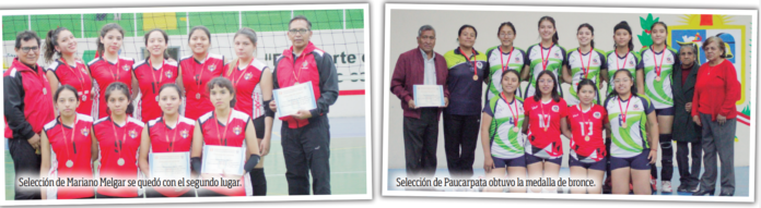 Cayma. La selección de Cayma se quedó con el título de la etapa provincial del Campeonato Juvenil de vóley damas categoría U-19. Las dirigidas por el técnico Jesús Churata demostraron un nivel superlativo que les permitió consagrarse como las mejores del torneo. En la final jugada en el Coliseo Francisco Bolognesi, el cuadro caymeño se impuso por 3-0 a su par de Mariano Melgar con parciales de 25-15, 25-14 y 25-09 en casi hora y media de juego.