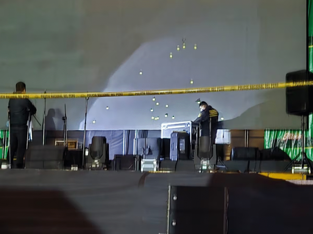 Aproximadamente a las 10:20 p.m., los disparos estallaron en medio del espectáculo. El público se lanzó al suelo y trató de huir por los laterales del recinto. Cámaras y grabaciones ciudadanas captaron el momento del pánico.