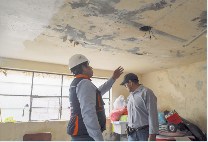 Además, se encontraron filtraciones en techos y paredes, lo que generó rajaduras y debilitamiento estructural en varias aulas.