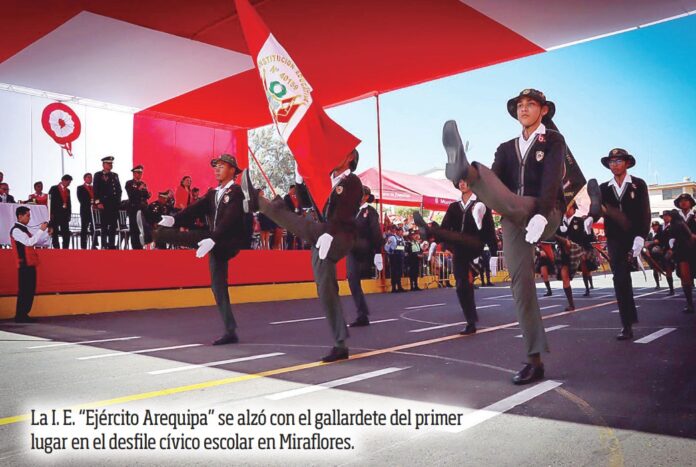 Cientos de estudiantes rindieron homenaje a la patria con danzas, bandas y formaciones. Este año, los colegios que ocuparon el primer y segundo lugar en nivel secundaria representarán a sus distritos en el esperado desfile “Campeón de Campeones”, que se llevará a cabo el sábado 19 de julio en la avenida Lima, en el distrito de Mariano Melgar.