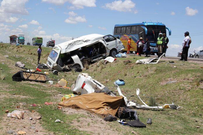Una joven madre y su bebé, así como los conductores de dos unidades de transporte público, fueron las víctimas mortales del accidente suscitado a pocos minutos de llegar a la ciudad de Azángaro, la madrugada de ayer.