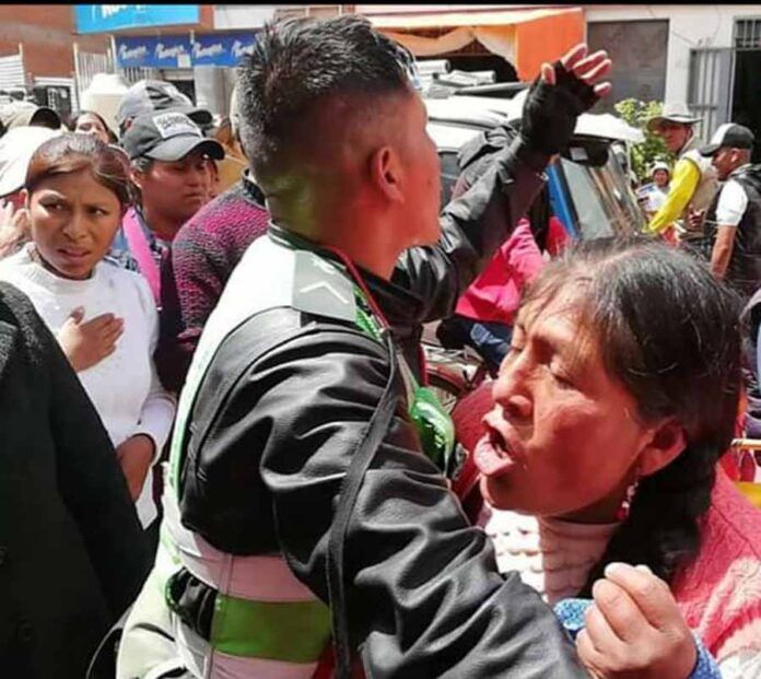 Esto, tras su reacción abrupta contra el efectivo de la policía Wilber Timo Ccanque Aquise, quien intentó calmarla tras un incidente con otra ciudadana, luego de reclamarle por la venta de un plato de chicharrón.