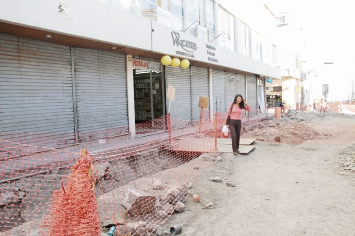 Los negociantes de la calle San Juan de Dios están desesperados porque sus ventas han caído hasta el 70%, a consecuencia de los trabajos realizados por la Municipalidad Provincial de Arequipa (MPA), por ello piden que se labore en 3 turnos y que se contrate más personal para acelerar la obra.