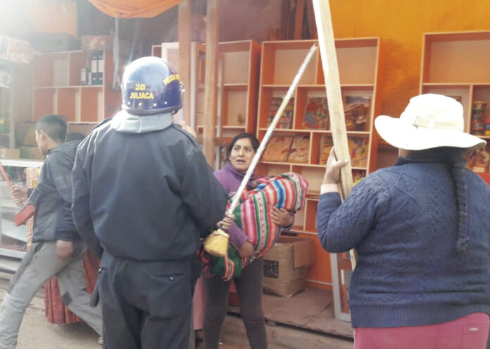 Un grupo de comerciantes de útiles escolares, instalados en las veredas del contorno del colegio emblemático José Antonio Encinas (JAE) de Juliaca, se enfrentaron a golpes con agentes de Serenazgo Municipal, cuando estos intentaron retirarlos de la zona.
