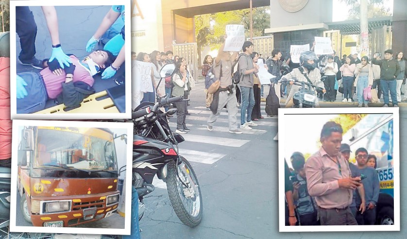 Compañeros de Brayan Hilmar Cuno Gamarra, un joven puneño, estudiante de la Universidad Nacional de San Agustín de Arequipa, atropellado por una cúster el pasado 30 de mayo, protestaron en exteriores de esta primera casa de estudios, exigiendo que la empresa se haga responsable de lo ocurrido y el chofer sea investigado.