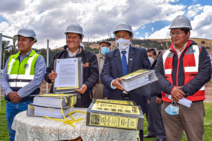 El gobernador regional de Puno, Germán Alejo Apaza, y el rector de la Universidad Nacional