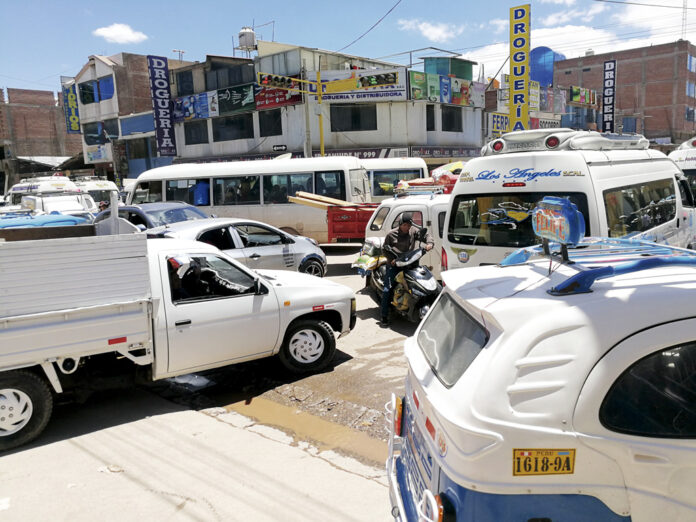 Debido a la falta de vías alternas y la apertura de calles, la congestión vehicular en el centro de la ciudad de Juliaca se ha vuelto un vía crucis para los conductores del transporte público y privado.